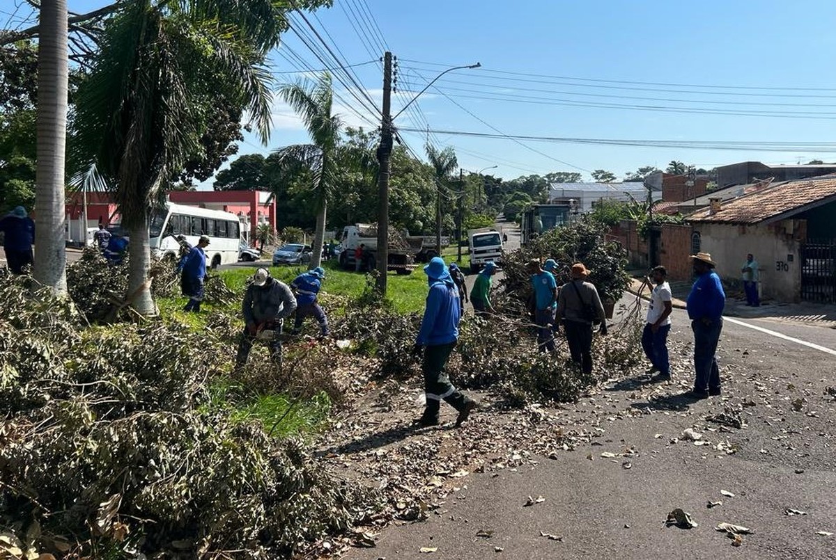 Trabalhos concentraram-se, nesta sexta-feira (10), no Jardim Brasil Novo, no Residencial Augusto de Paula e na região do Jardim Bongiovani. Força-tarefa para limpeza e recolhimento de galhos de árvores após temporal é realizada em Presidente Prudente (SP)