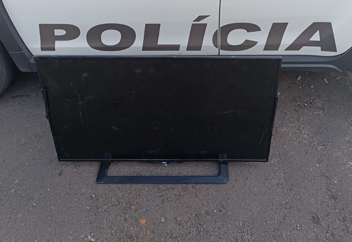 Após receber a informação de que uma casa havia sido invadida, a Polícia Militar se deslocou até o local e avistou um rapaz, de 27 anos, em cima do muro do imóvel segurando um aparelho televisivo.