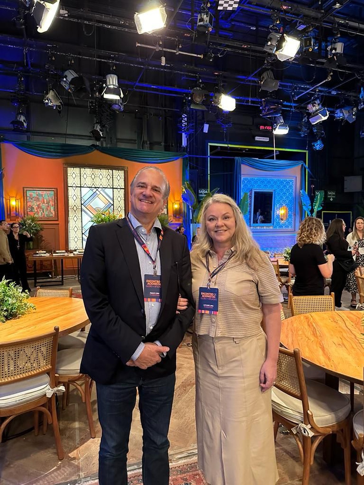 O diretor executivo da TV Fronteira, Paulo César de Oliveira Lima, e a diretora executiva da TV Fronteira, Luciane Cappellazzo de Oliveira Lima, participaram nesta quinta-feira (7), nos Estúdios Globo, no Rio de Janeiro (RJ), do Encontro de Acionistas Globo + Afiliadas.