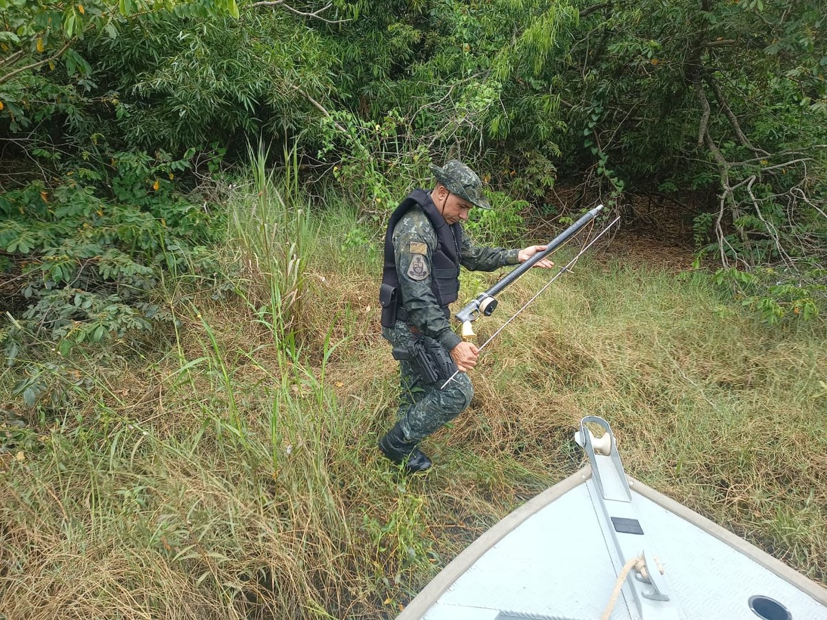 Em meio a perseguição, foi possível avistar que os homens arremessaram objetos perfurantes da embarcação, que foram localizados após diligências. Duas espingardas de mergulho foram apreendidas, uma delas estava submersa e a outra estava na gramaVeja mais notícias em g1 Presidente Prudente e Região.