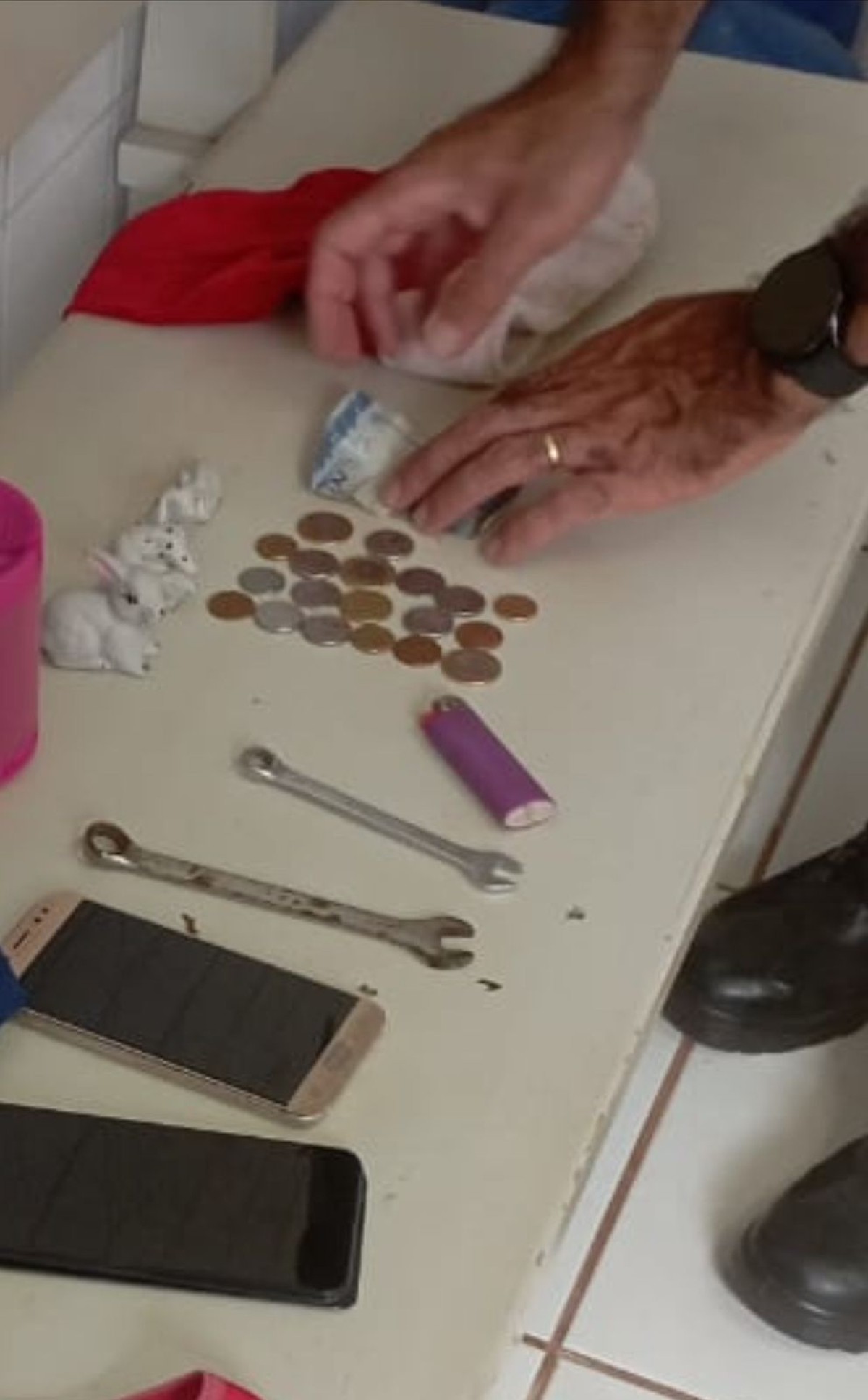 A Polícia Militar foi acionada e conseguiu prender o suspeito nas proximidades do local ainda com os objetos roubados.