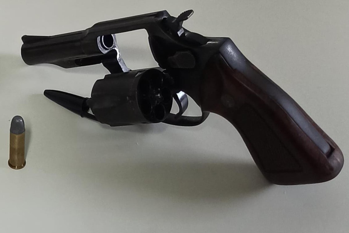 O revólver e um celular foram apreendidos.