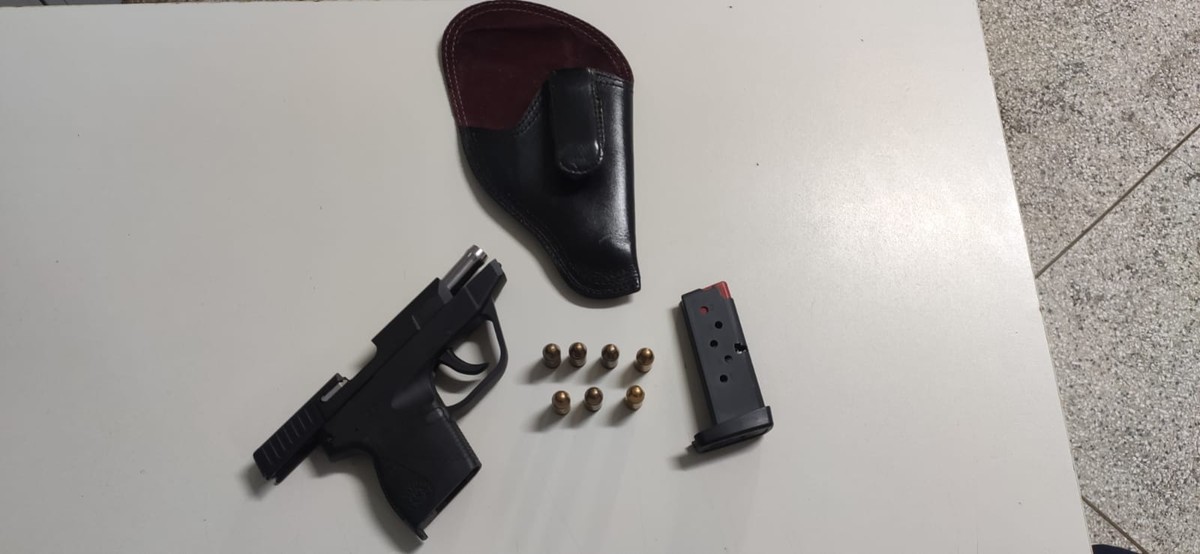No carro dele, foi apreendida uma pistola de calibre 380, carregada com sete munições intactas.