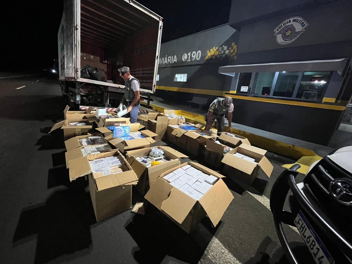 Dois homens, de 26 e 33 anos, foram presos, na noite desta quarta-feira (27), com uma grande quantidade de produtos eletrônicos de origem estrangeira e sem documentação fiscal, no km 3 da Rodovia Júlio Budiski (SP-501), em Presidente Prudente (SP).