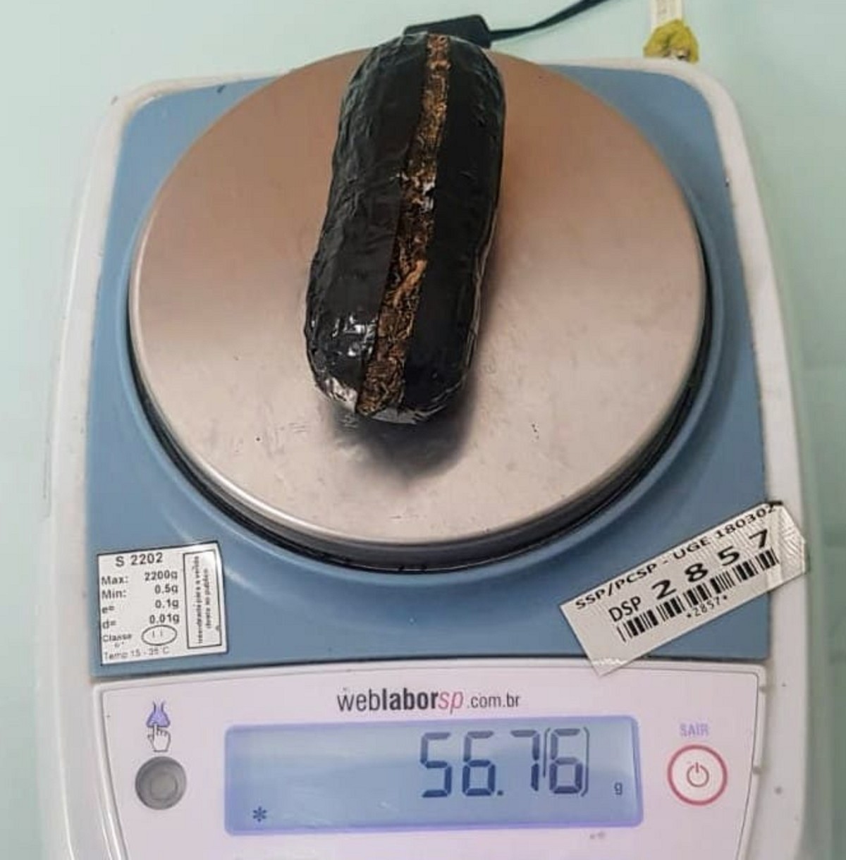 De forma voluntária, ela entregou um invólucro que estava escondido nas partes íntimas. O item possuía 47 gramas de uma substância que aparentava ser maconha e 31 gramas de uma massa que se assemelhava a pasta base de cocaína.