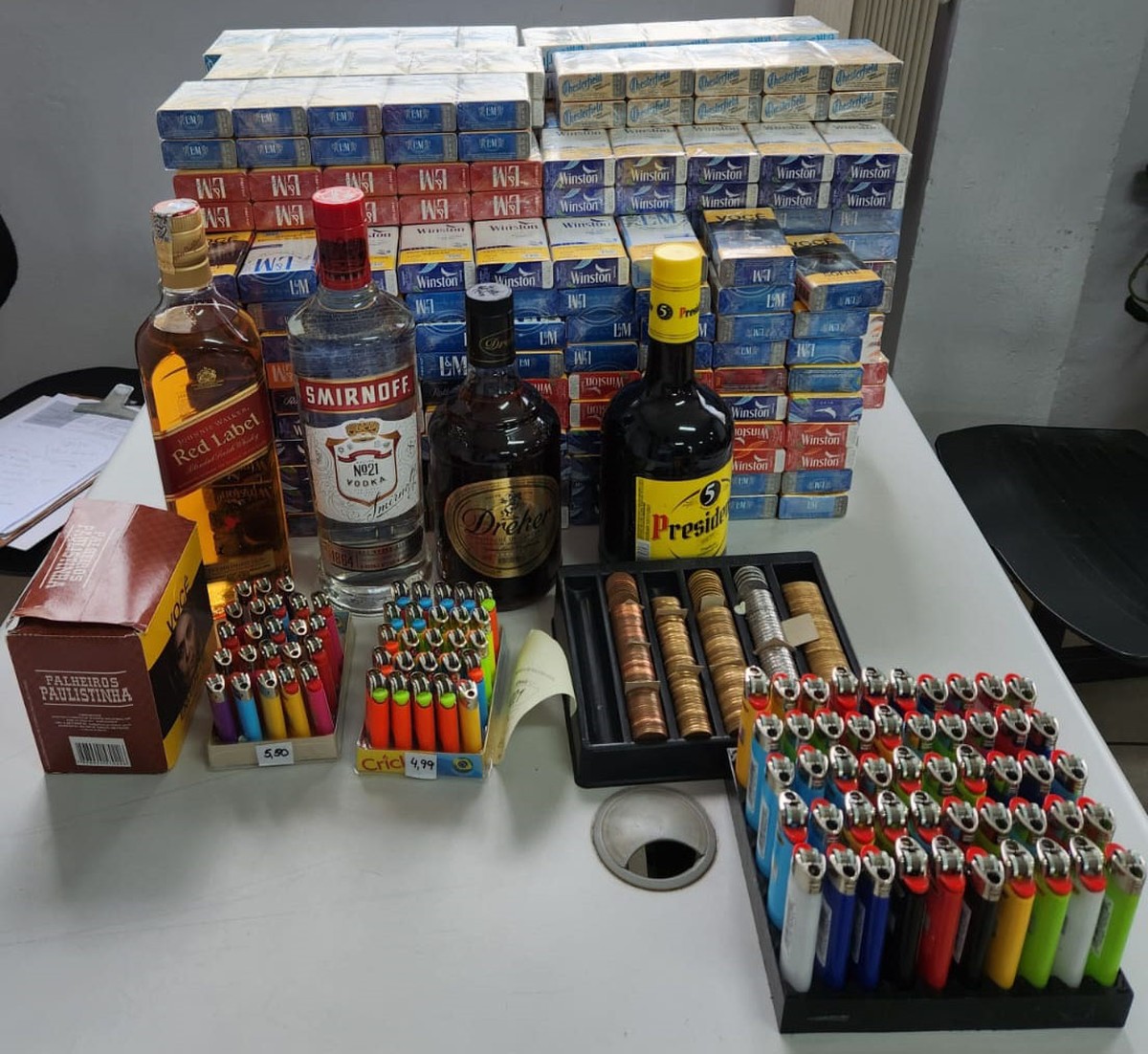 A sacola dispensada pelo suspeito foi recuperada e continha maços de cigarros, garrafas de bebidas alcoólicas e isqueiros, que totalizaram R$ 4,5 mil, além de R$ 99,40 em moedas.