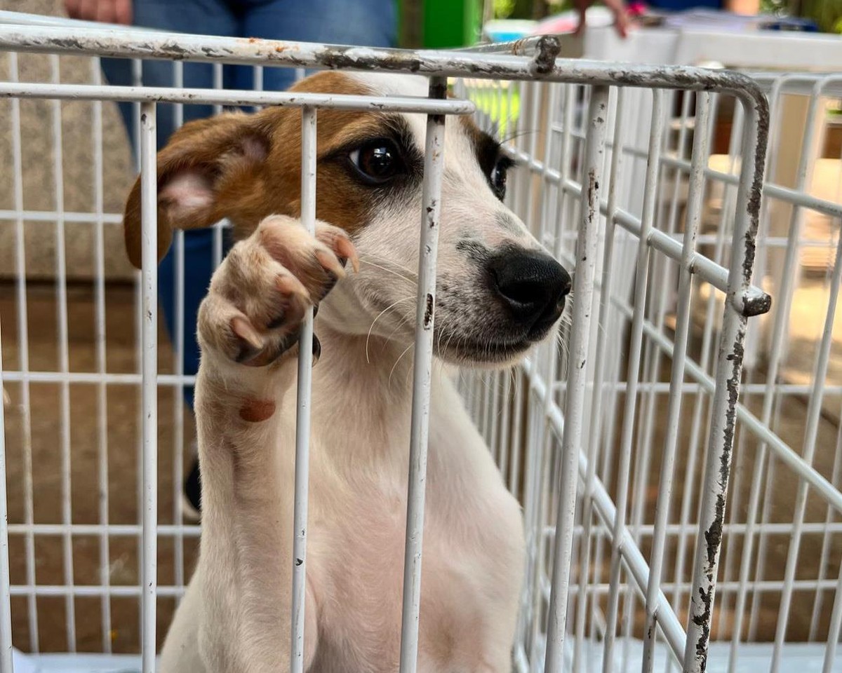 Cachorrinhos buscam novo lar em feira de adoção realizada nesta quinta-feira em Presidente Prudente (SP)