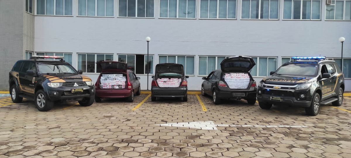 Conforme a Polícia Federal, os policiais realizavam barreira nas imediações do posto de cobrança e abordaram três veículos carregados com cigarros contrabandeados do Paraguai com cerca de 30 caixas, ou 15 mil maços.