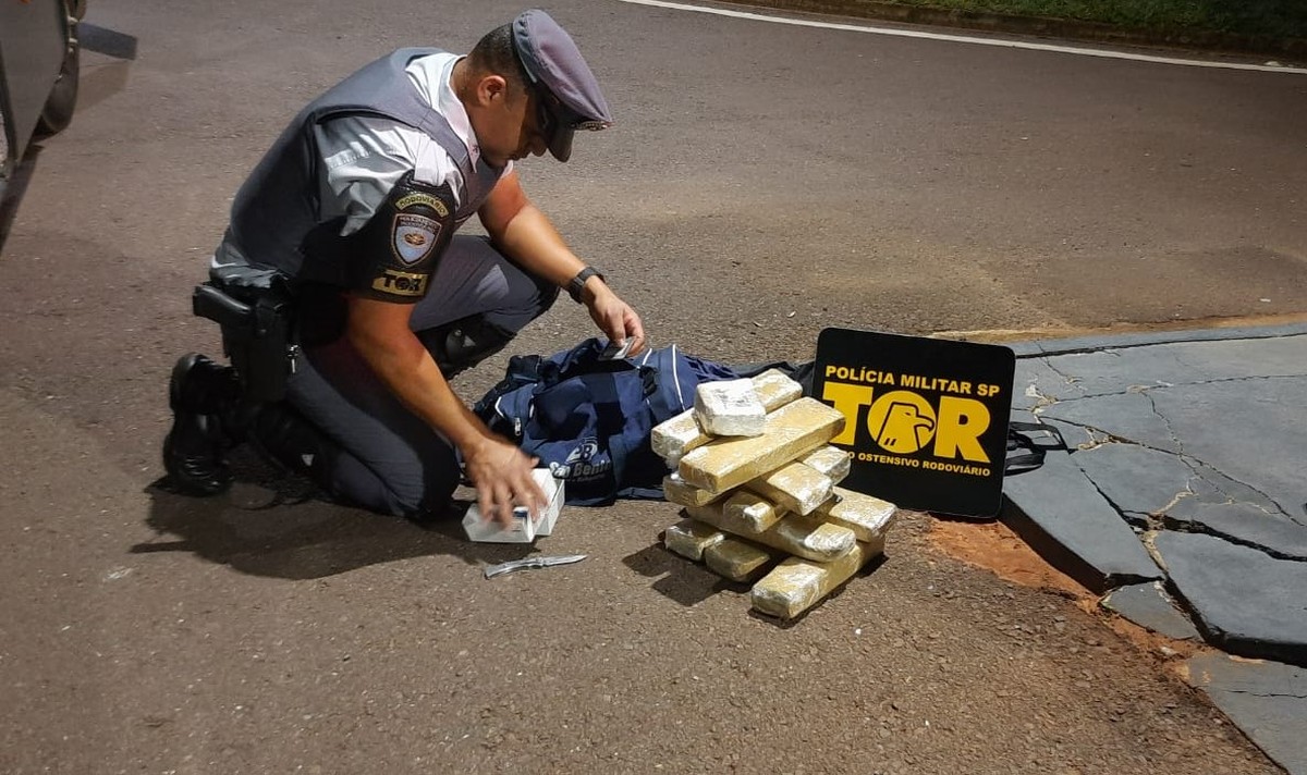Durante fiscalização, a Polícia Rodoviária localizou no bagageiro externo uma bolsa azul contendo 11 tabletes de maconha e um tablete de crack, totalizando 10,939 kg de entorpecentes. Passageiro de ônibus interestadual é preso em flagrante com quase 11 kg de droga, em Presidente Venceslau (SP)