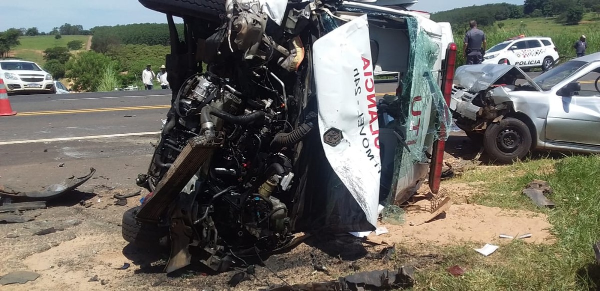 Um dos veículos envolvidos trata-se de uma ambulância particular e um dos acidentados teve ferimentos graves.