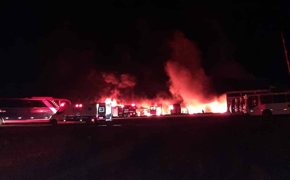 Incêndio atinge garagem de empresa de ônibus em Dracena (SP)