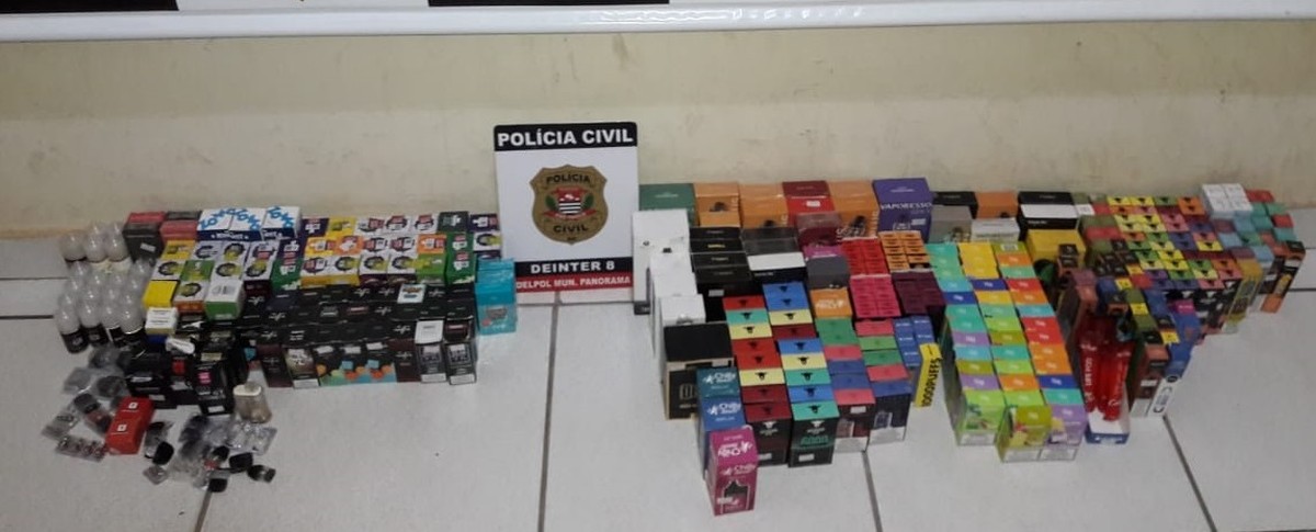 Uma operação da Polícia Civil para combater a venda ilegal de cigarros eletrônicos nas cidades de Dracena (SP) e Panorama (SP), nesta quinta-feira (13), resultou na apresensão de 273 cigarros eletrônicos, 245 essências e 27 acessórios.