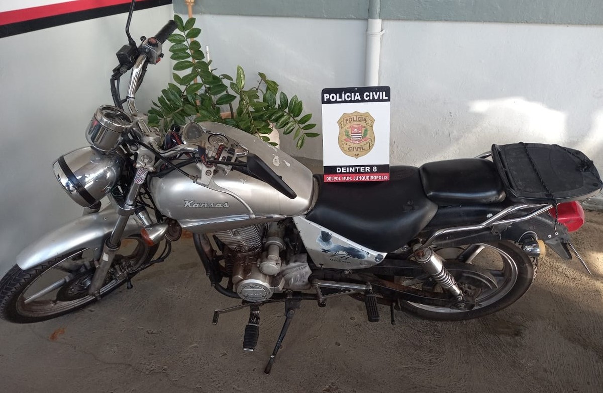 Veículo havia sido levado na última segunda-feira (10) e foi localizado pela Polícia Civil “sem nenhum dano aparente” quatro dias depois. Motocicleta furtada em frente à casa do proprietário durante a madrugada é recuperada, em Junqueirópolis (SP)
