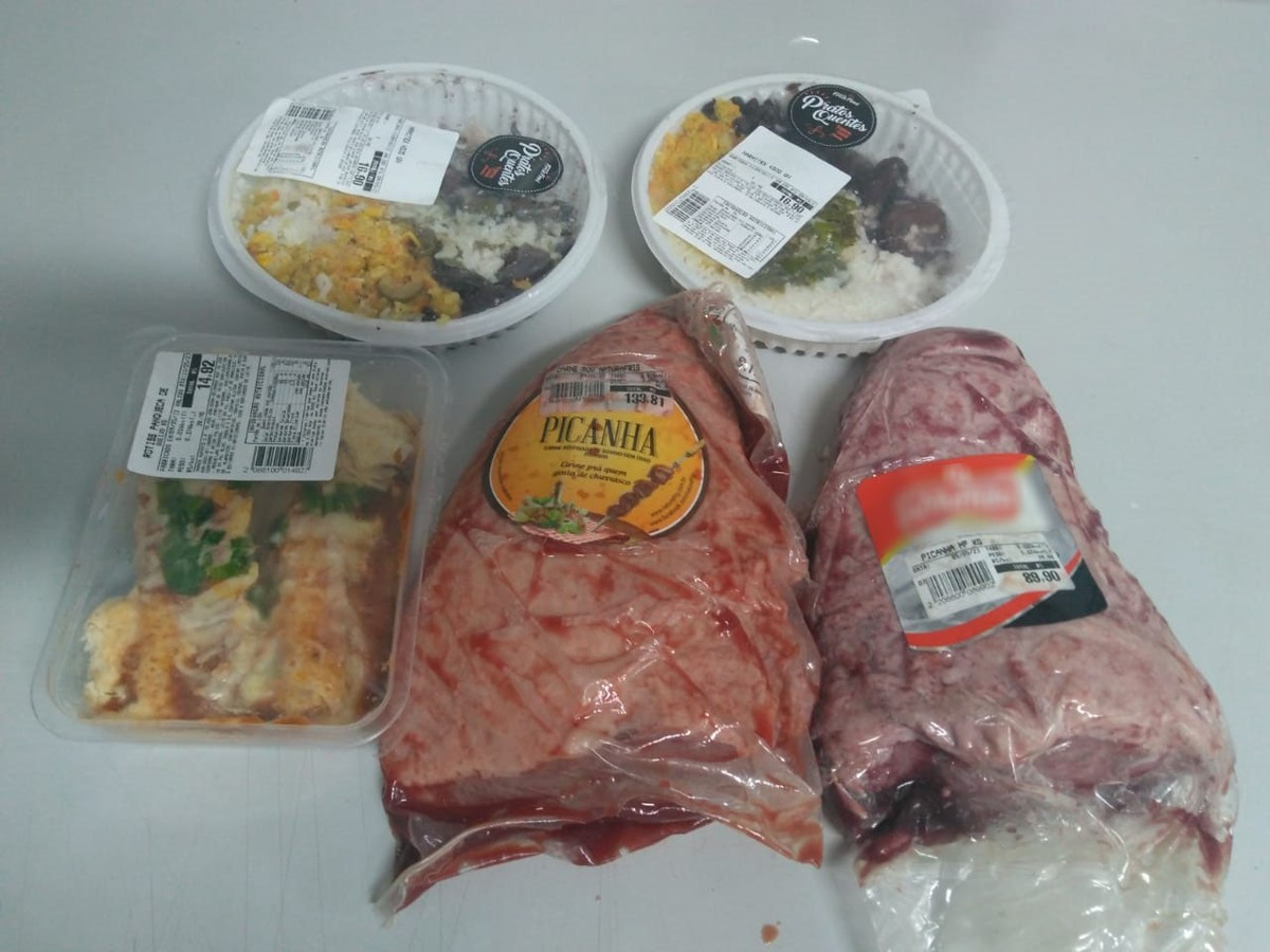Dentro da bolsa havia três marmitas e, na calça, duas peças de picanha, que totalizaram a quantia de R$ 272,43.