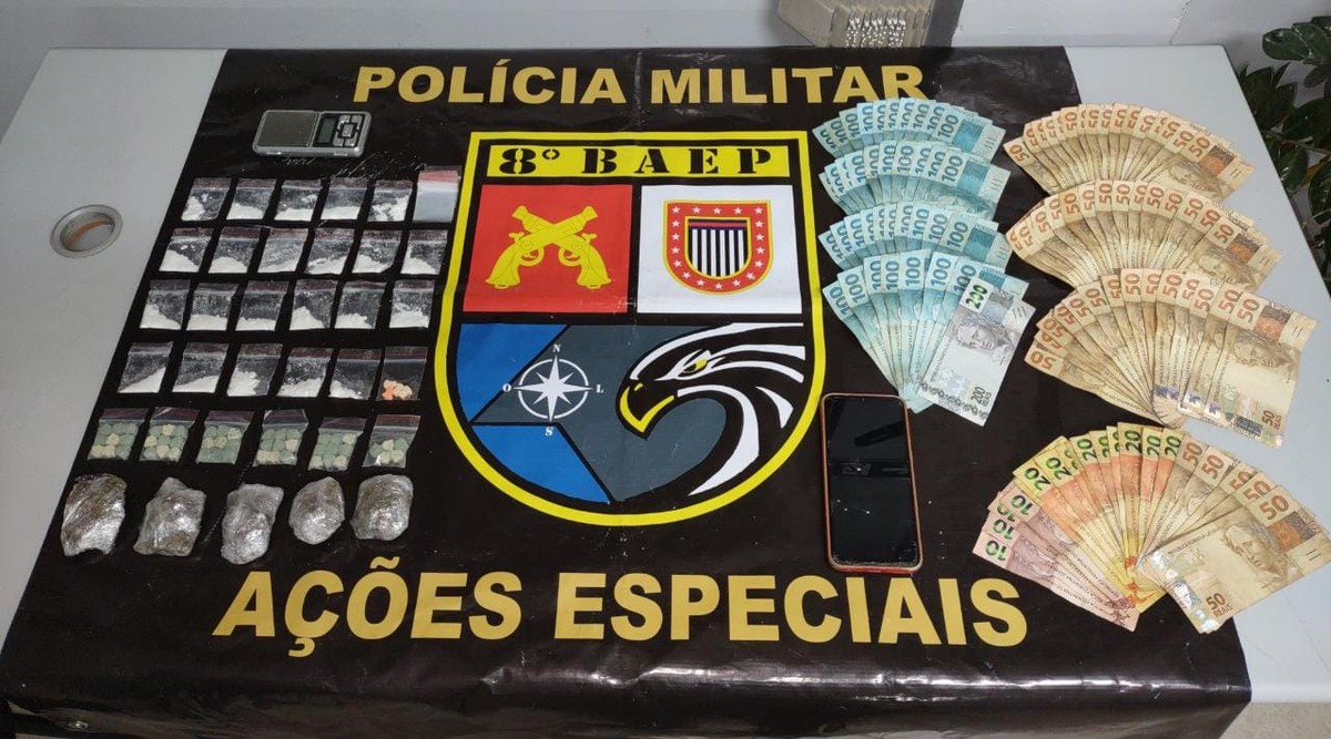Policiais do 8º Baep também localizaram R$ 6.770 em espécie provenientes do tráfico, na residência do suspeito. Policiais do 8º Baep apreenderam os entorpecentes e R$ 6.770 na residência do suspeito, em Presidente Prudente (SP)