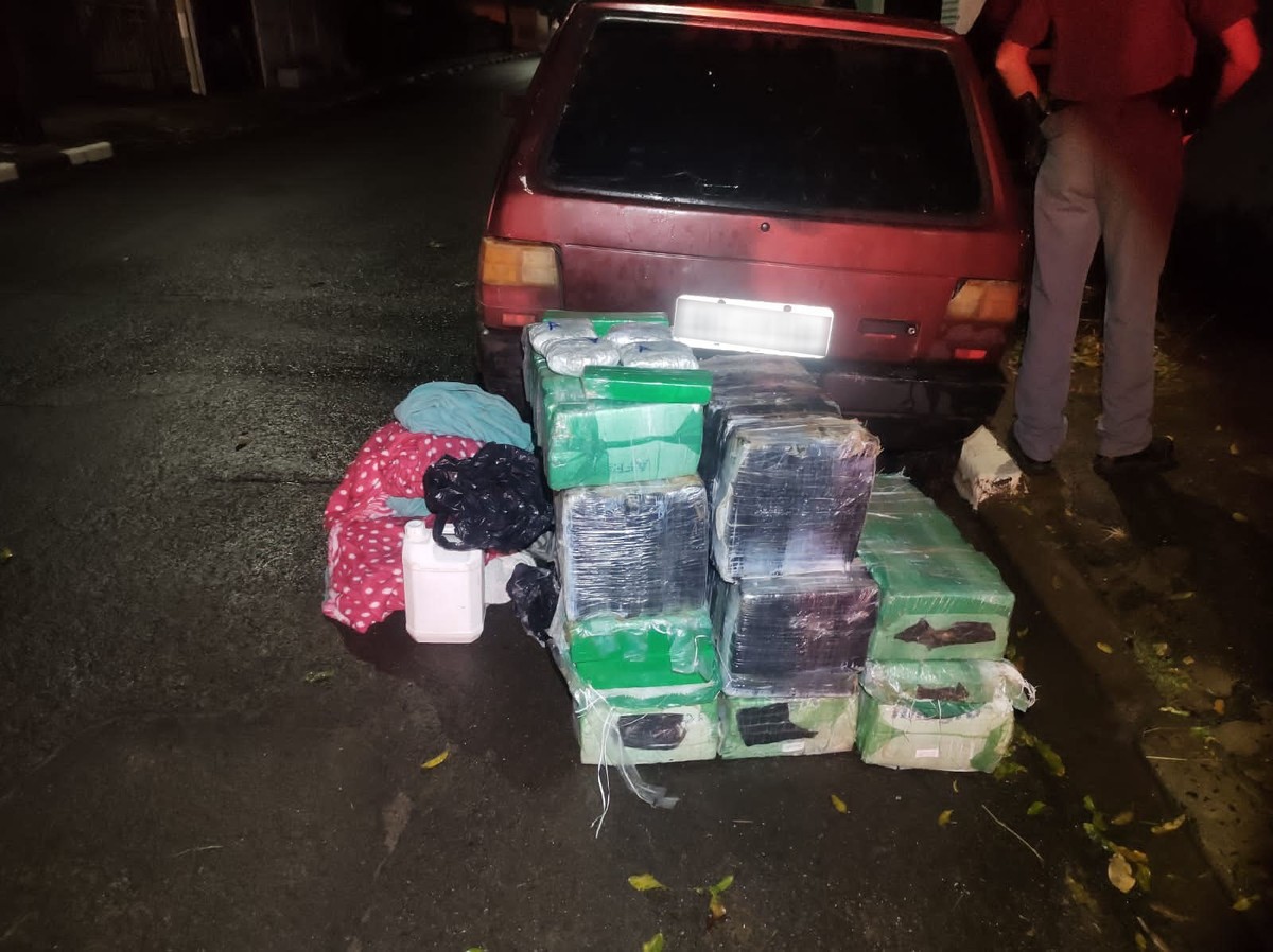 Diante das circunstâncias, o condutor foi abordado e o veículo foi vistoriado. Durante a fiscalização, a equipe visualizou diversos tabletes de maconha no banco traseiro e no compartimento de carga.