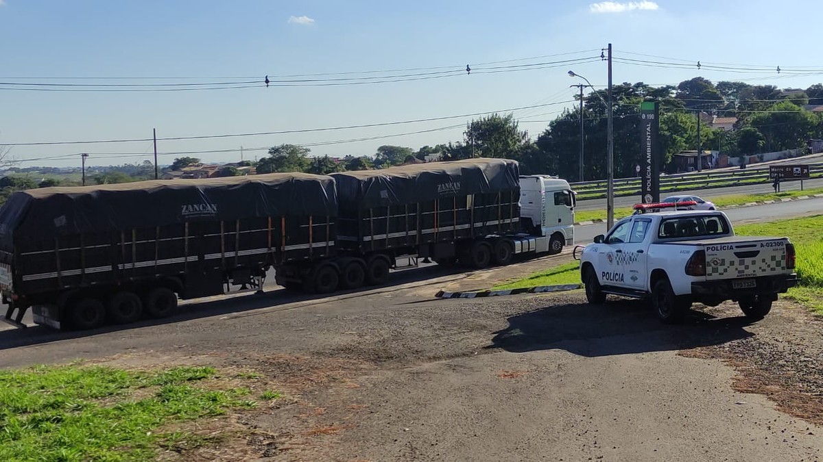 O caminhão foi destinado até a base da Polícia Militar Rodoviária de Presidente Prudente, onde foi realizada a abordagem.