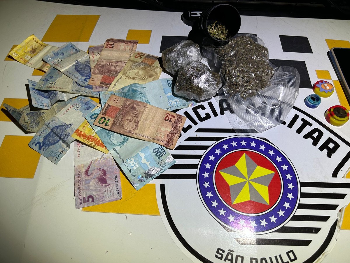 O forte cheiro característico de droga no veículo, com placas de Presidente Prudente, despertou a suspeita dos policiais, que durante uma vistoria no carro encontraram e apreenderam 171 gramas de maconha e 24 gramas de haxixe, além de apetrechos para uso de entorpecente e R$ 330,00 em dinheiro.