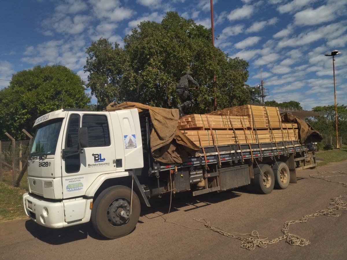 O caminhão que realizava o transporte da carga e a madeira irregular foram apreendidos e depositados à empresa transportadora.