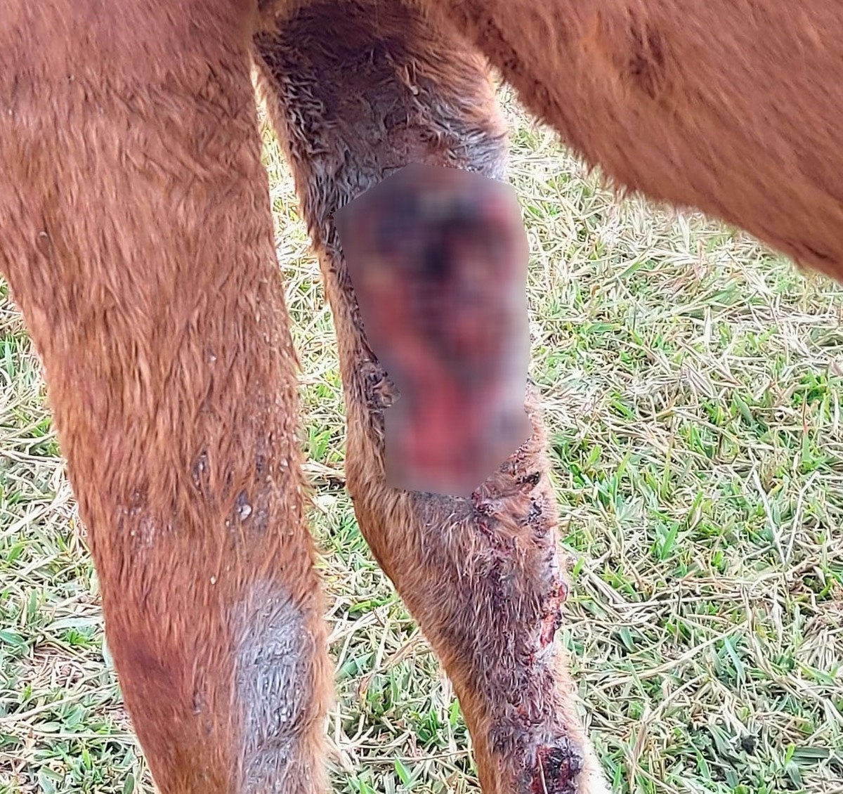 Ele apresentava um grande ferimento na pata frontal direita, que estava infestado de larvas. Os agentes também observaram que uma das orelhas do cavalo “estava com bicheira”.