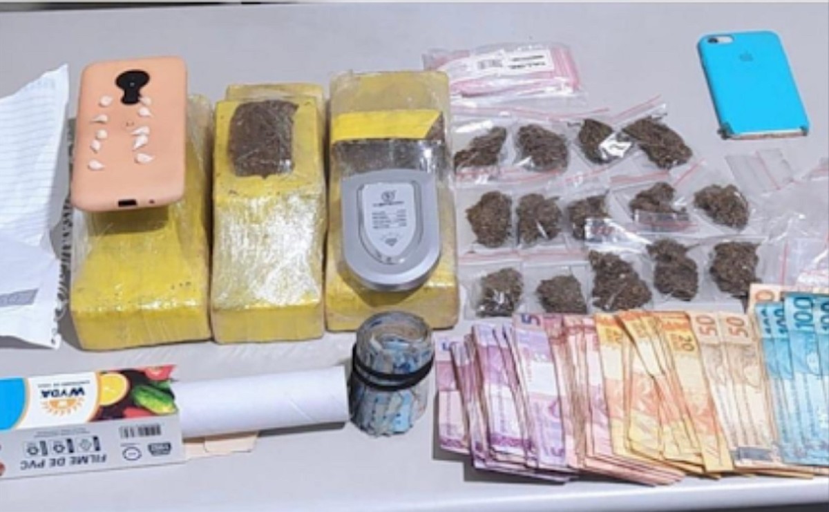 Além disso, no local, foram localizados e apreendidos dois aparelhos celulares, uma balança de precisão, objetos utilizados para embalar as drogas e a quantia de R$ 1.772,00, em diversas notas.