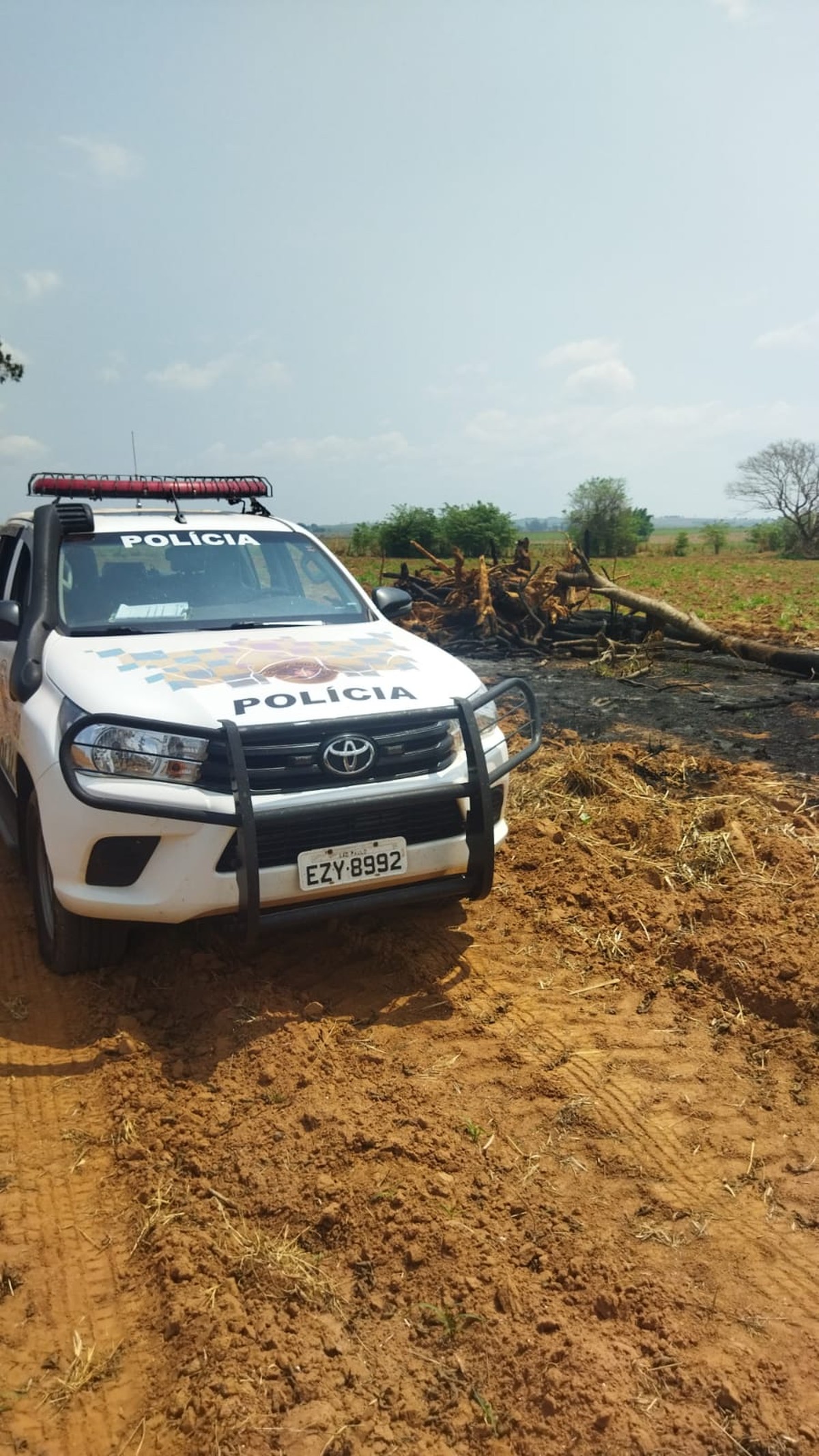 No sítio, os policiais constataram que tinha havido a erradicação de 15 árvores nativas isoladas da espécie leiteiro, através da comparação de imagens via satélite e verificações no local, onde existiam os troncos originais, ou seja, em desacordo com a autorização obtida, que era de apenas 10 árvores.