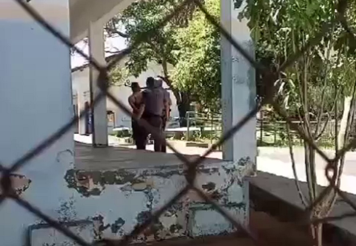 Segundo a Polícia Militar, os agentes iniciaram a tentativa de abordagem do suspeito em uma casa, que fica fora da escola. No entanto, o jovem, na primeira tentativa de escapar dos policiais, invadiu a unidade pública de ensino, onde acabou capturado.