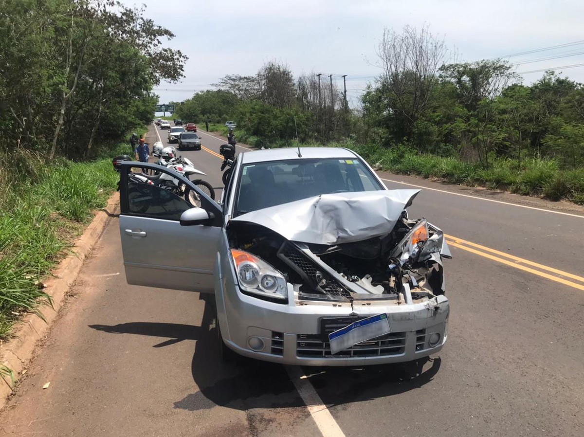 Acidente deixou quatro pessoas feridas na Rodovia Ângelo Rena, nesta segunda-feira (17) — Foto: Vinicius Alonso/TV Fronteira