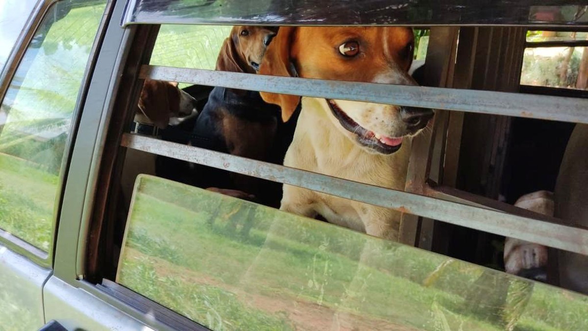 Os policiais encontraram seis cães americanos, todos preparados para a caça, com colar de GPS, e ainda uma espingarda e nove cartuchos de calibre 12.